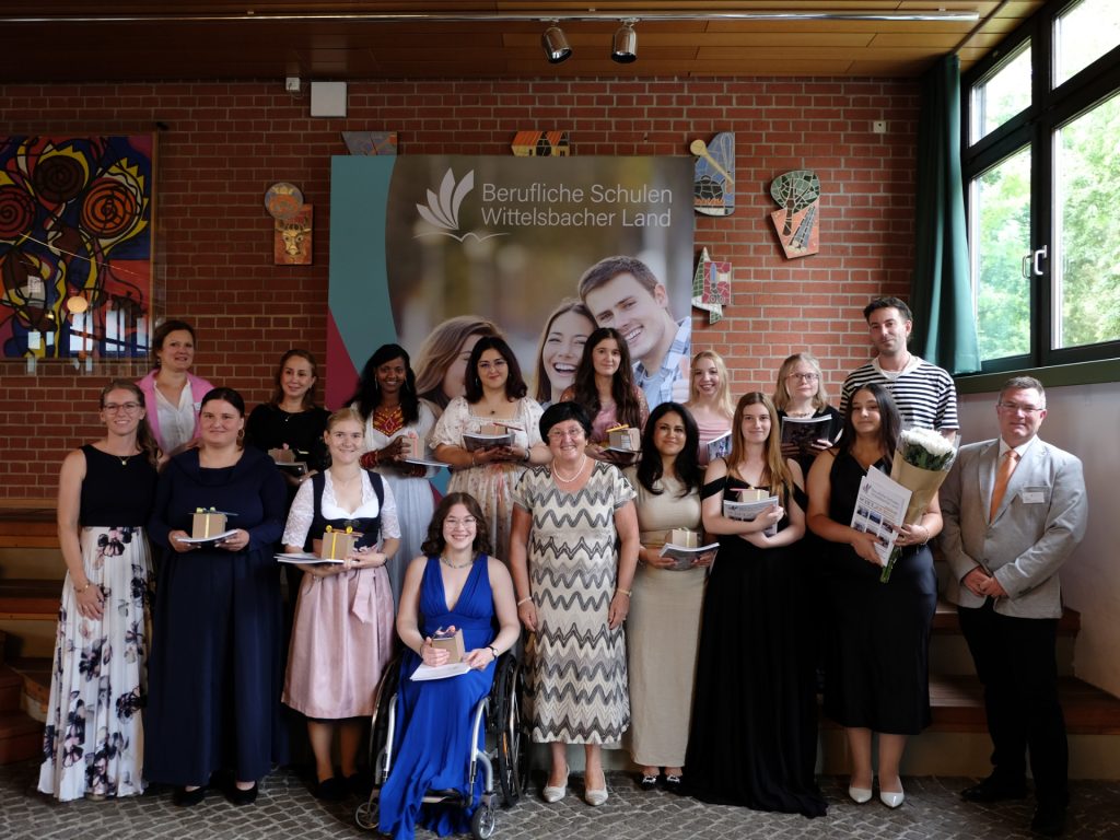 Ein Höhepunkt der Feier war die Überreichung der Abschlusszeugnisse und Berufsurkunden, verbunden mit der Ehrung der acht Jahrgangsbesten mit einem Notendurchschnitt von 1,5 und besser, die alle mit einer Staatspreisurkunde der Regierung von Schwaben ausgezeichnet wurden, verbunden mit einem Geldpreis. Jahrgangsbeste waren Engelhardt Christine, Schülerin der Berufsfachschule für Kinderpflege Aichach-Friedberg und Sarah Seideneder, Studierende der Fachakademie für Sozialpädagogik mit einem sensationellen Notendurchschnitt von 1,0.